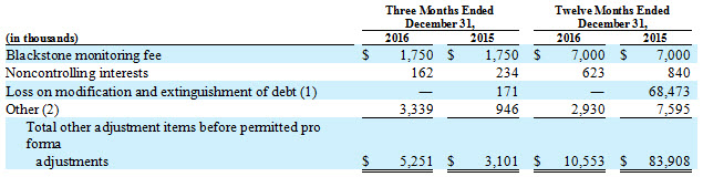 (4) For the twelve months ended December 31, 2016, other non-recurring items consisted of $4.3 million in specifically identified non-recurring operational and regulatory projects and $2.8 million in professional fees and other non-recurring charges.