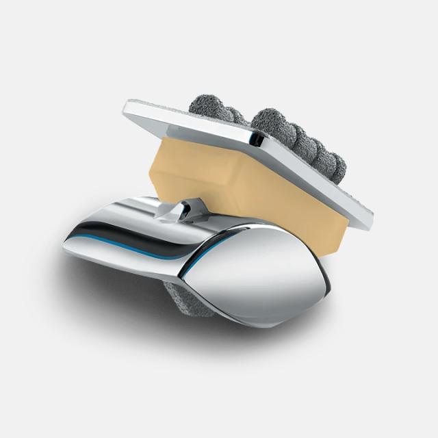 e+™ Polyethylene contains the free radical-neutralizing antioxidant vitamin E; as a result, the material resists oxidation and maintains consistent wear rates and stable mechanical properties over time. In contrast, other highly crosslinked polyethylenes are remelted during manufacturing to neutralize free radicals2, a process that can reduce their mechanical strength by up to 12%.1,3