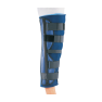 Universal three-piece design for ease of adjustment and correct size adjustment. Foam posterior panel may be trimmed for a customized fit. Foam/mesh side panels with I-beam stays and encircling loop lock straps for maximum stability. Straight stay version features popliteal pad. Ideal for post-operative immobilization; grade 1 and grade 2 collateral ligament sprain; patellar subluxations.