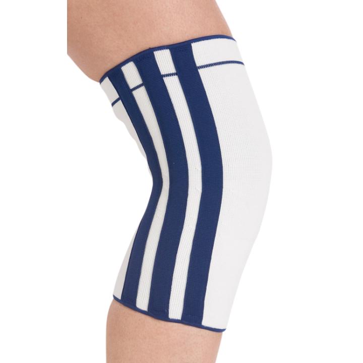 Cotton/elastic construction provides cool, comfortable compressive support. Six (6) sewn-in medial/lateral spiral stays for additional support. Ideal for osteoarthritis; bursitis; grade 1 collateral