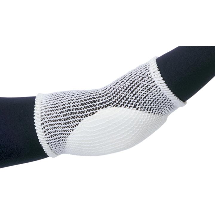 Knitted stretch stockinette covered comfort pad for use on heel, elbow or knee. Sold in pairs. One size fits all.