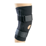 1/8" neoprene support with choice of adjustable felt horseshoe-buttress or sewn-in tubular buttress to accommodate mild patella tendonitis, chondromalacia, or subluxation. Donut buttress may be trimmed to allow for medial, lateral, or superior buttress. Medial/lateral spiral stays and superior/inferior compression straps provide additioanl stability. Open popliteal available with donut buttress only.
