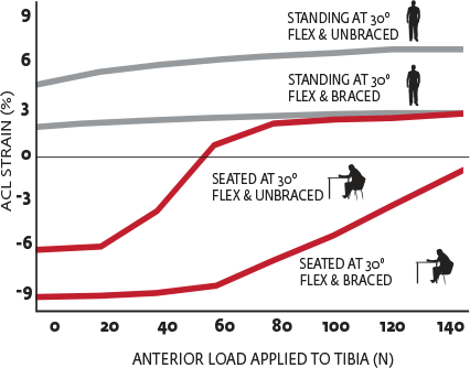 - Decreases ACL strain by 50% for anteriorly directed loads during weight bearing and non-weight bearing activities12, 13