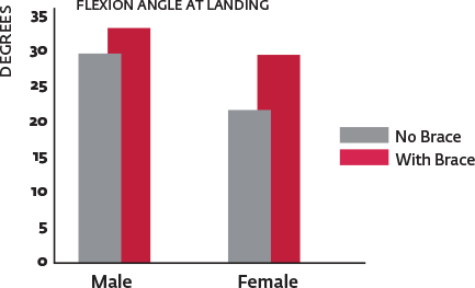 - Significantly increases knee flexion angle at peak posterior ground reaction force (PPGRF) by 9° vs. a standard braced knee and a non-braced knee18,20